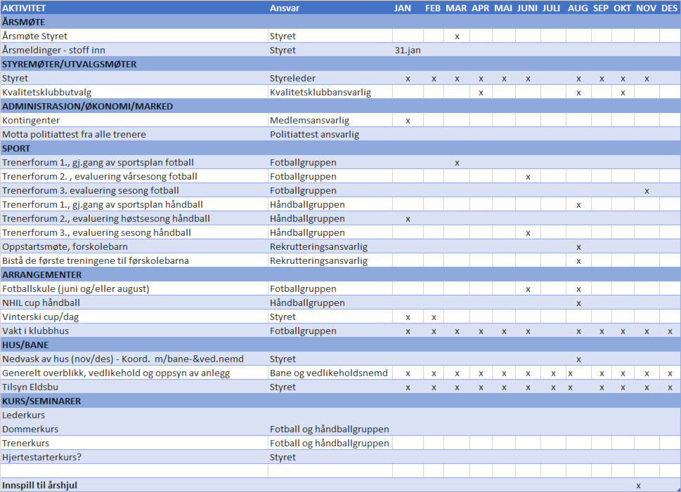 Årshjulet til NHIL håndball gir en oversikt over de viktigste aktiviteter gjennom året.